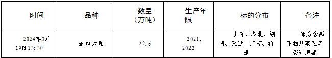 受中储粮油脂有限公司委托,2024年3月19日13:30在国家粮食和物资储备局粮食交易协调中心及联网的各省(区、市)国家粮食交易中心组织开展进口大豆竞价交易,请交易会员通过国家粮食交易中心官网()“用户中心”,登录国家粮食交易平台,在专场列表中选择“进口大豆竞价销售交易”参与交易。现就有关事项公告如下(重点提示内容详见加粗字体部分)